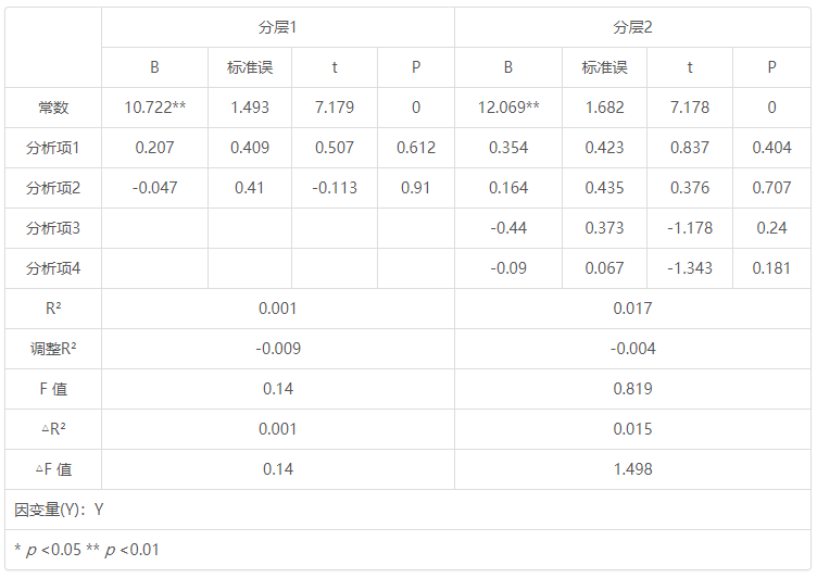 | 分析项 | 分层回归分析说明 |