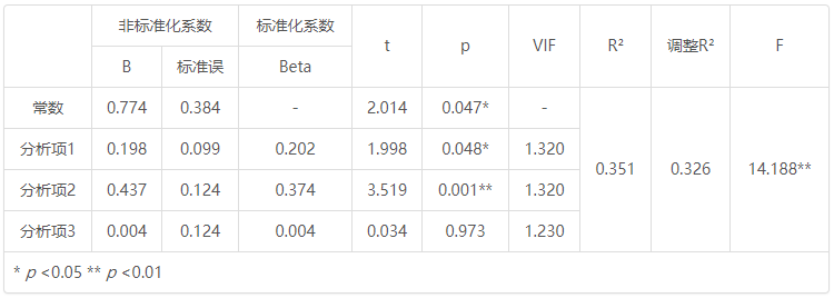 分析项2 0.437 0.124 0.374 3.519 0.001** 1.320