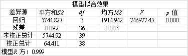 | 回归 | 5744.827 | 3 | 1914.942 | 746977.45 | 0.000 |