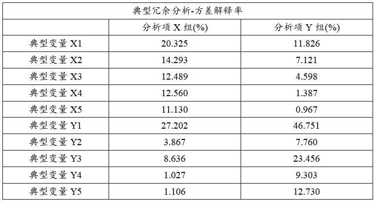 典型冗余分析是指研究典型变量对于X组的信息提取量;也或者典型变量对于Y组的信息提取量情况。