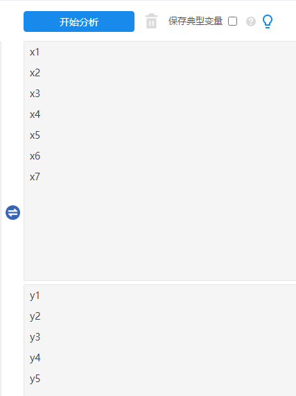 - 典型变量是成对出现的,比如当前两个典型变量分别是典型变量1和典型变量2;分析时会出现典型变量X1和典型变量Y1;典型变量X2和典型变量Y2。
