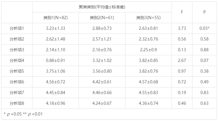 | 类别1(n=82) | 类别2(n=61) | 类别3(n=55) |