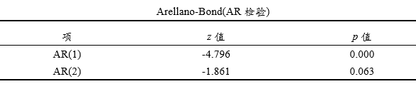 Arellano-Bond(AR检验) 展示AR检验结果