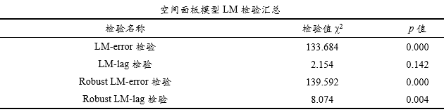 | 空间面板模型LM检验汇总 | 输出LM检验用于判断应该是空间面板滞后模型或者空间面板误差模型 |