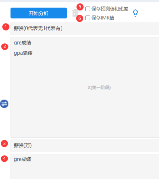 3 Y2(第2阶段,定量) 第2阶段ols回归的被解释变量,本案例为‘薪资(万)’。