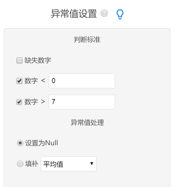 • ###### 关于异常值设置,有以下注意事项: