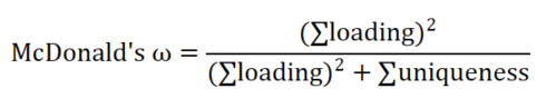 上式中loading为载荷系数值,uniqueness为1-loading^2。从上式可知,loading值整体绝对值越大时,McDonald's ω信度系数值也会越高。