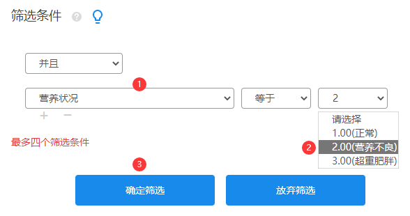 上图展示‘营养状况’的筛选过程,筛选之后,接着进行‘卡方拟合优度检验’,使用SPSSzero医学研究模块里面的‘卡方拟合优度检验’方法,操作截图如下: