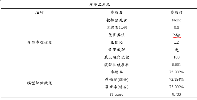 | 优化算法 | Logistic回归内部涉及的数学算法,可结合数据样本量等进行选择使用 | lbfgs : 默认lbfgs牛顿法,算法较稳定; liblinear: 小型数据时使用; newton-cg : 另一种牛顿迭代法; newton-cholesky:样本量远大于特征数量时可以使用; sag:样本量非常大时建议使用; |