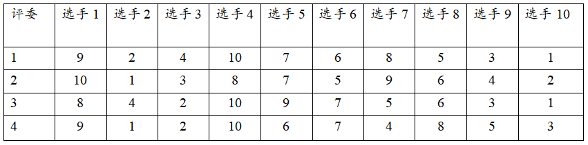 评委 选手1 选手2 选手3 选手4 选手5 选手6 选手7 选手8 选手9 选手10
