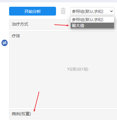 本例子使用‘带权重数据格式’进行分析,将‘权重’项放入对应框中即可,操作截图如下: