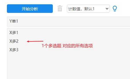 - 多选,单多、多单和多多分析这四个,涉及多选题的分析。每次仅放入一个多选题对应的所有选项,如果有多个多选题则重复分析。