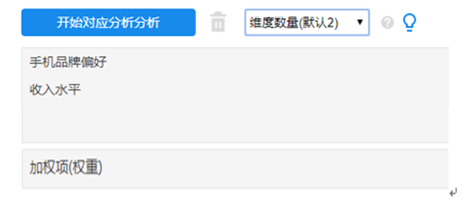 本例子使用加权数据格式,因此需要放置对应的加权项,维度个数默认为2个,操作如下图。