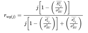 针对组内评分者信度rwg值,本案例中其用于研究整体10个成员的得分一致性情况:ICC1值研究每个测量项的得分一致性情况,ICC2值研究6个测量项得分上的一致性情况。事实上rwg值、ICC1值和ICC2值的意义均在于评价一致性情况。但通俗理解来看(从站在角度上),rwg值可理解为研究‘行’数据的一致性,ICC1或ICC2值研究‘列’数据的一致性情况。关于rwg值、ICC1值或ICC2值的计算公式说明如下: