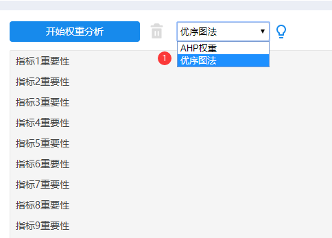 - 如果是希望结合数字大小进行权重计算,比如数字越大即权重越大,此时可使用优序图法或AHP法,AHP法一般是专家打分时使用较多。如果是根据数字本身的熵值进行权重计算,则选择熵值法即可。
