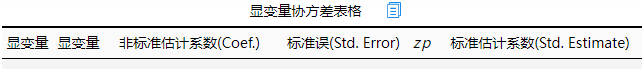 | 显变量协方差表格 | 查看显变量之间的关系强弱,只有设置后才会有结果 | 显变量间协方差 |