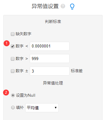 • 如果分析结果出现null值,原因是原始数据中有小于或者等于0的原始数据;因此将小于或等于0的数据处理即可。具体操作为:SPSSzero数据处理->异常值功能操作截图如下: