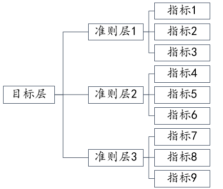 • 比如有三层结构如下图,通常有着指标层即指标1到指标9的数据,因此可以分别得到具体指标的权重(可考虑比如准则层1对应的3个指标做1次熵值法,准则层2的3个指标做1次熵值法,准则支3的3个指标做1次熵值)。接着3个准则层的权重如何计算呢?常见有以下几种处理办法,1是将9个指标做主成分分析并且设置为3个主成分,利用主成分方差解释率来得到3个准则层的权重;2是收集专家打分数据进行AHP层次分析法得到3个准则层的权重;3是分别做3次熵值法并且保存综合得分,分别得到准则层对应的数据(综合得分),然后利用综合得分进一步分析比如再一次熵值法或其它分析方法等。更多关于组合赋权,可参考此页面