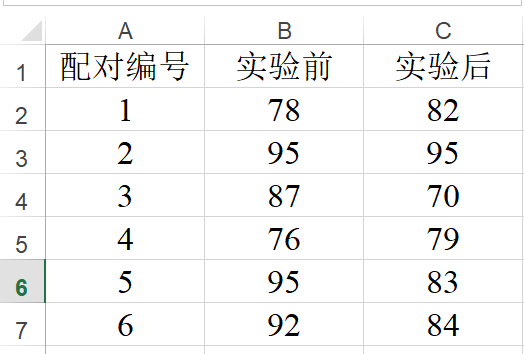 • 比如上图中有5个配对样本,‘实验前’和‘实验后’进行配对,‘实验前’和‘实验后’一定是分别单独的一列。