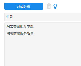 本例子中研究X对于Y的差异;X为性别,Y为两项,分别是“淘宝客服服务态度”,“淘宝商家服务质量”。放置如下: