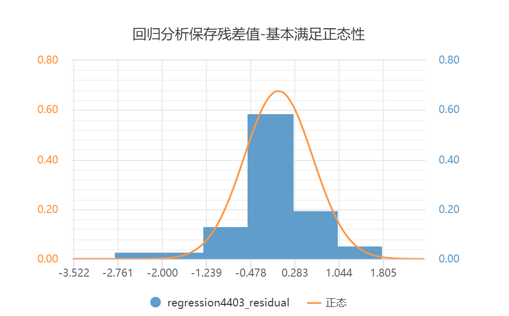 - 回归分析后模型检验,将残差进行正态性检验,如果残差呈现出正态性意味着模型构建良好,反之说明模型构建较差。