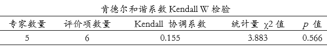 在实际分析中,由于专家数量较少且评价指标不多(类似当前数据),那么可能出现数据稍微波动则没有通过一致性检验的情况,需要研究者提前关注。