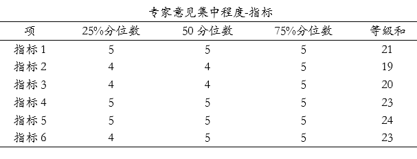 | 专家意见集中程度及筛选判断 | 展示专家意见集中程度,并且结合界值分析指标是否应该保留 |