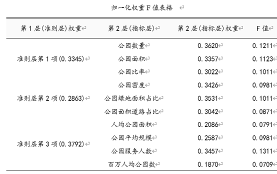 从上表格可以看到F值的计算过程,F值= WP(W为准则层权重,P为指标层权重),且SPSSzero 默认会对准则层对应的指标层权重进行归一化处理后计算。比如上表格中‘公园数量’对应的F值为0.1211=0.33450.3620。