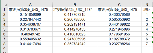 - 第五步、计算准则层U值;其计算公式如下: