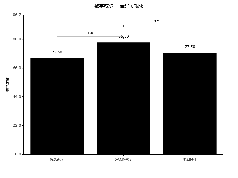上图可数学成绩的差异可视化,并且使用号来标识,并且上图中对比的p 值已经进行过Bonferroni校正来使用,而并非直接使用表格里面的p* 值。